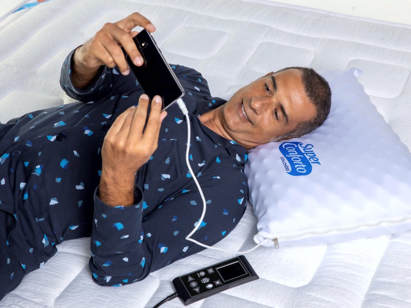 Camada extra de conforto com visco-elástico se molda ao formato do corpo para reduzir os pontos de pressão proporcionando uma sustentação uniforme.